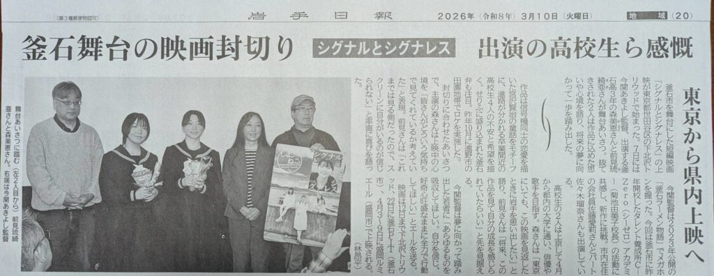 岩手日報に、東京・下北沢トリウッドで行われた映画『シグナルとシグナレス』の舞台あいさつの様子が掲載されました!